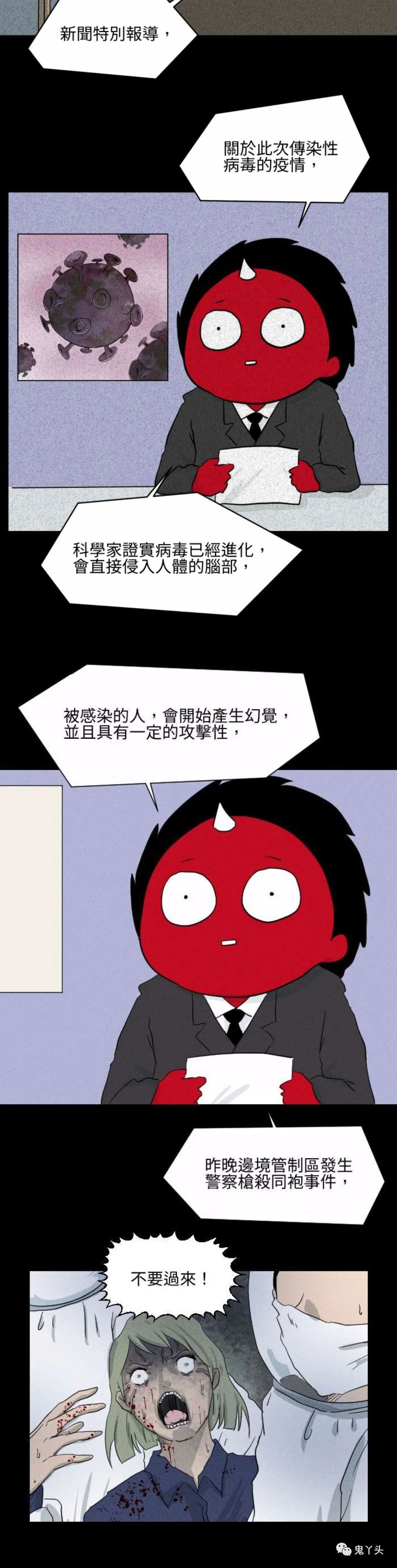 百鬼夜行志之《掩埋的真相》(2) 2020-08-25百鬼夜行志 发布者:pink少女 来源:咚漫 其实男女主在和奶奶及孙女争执时都被病毒感染了。奶奶和孙女可能早就被感染了,只是她们不知道而已; 男主在争执中被奶奶咬了一口,女主应该是被孙女袭击时感染的。 被感染者都会产生幻觉并具有攻击性。所以女主才会将同伴当做死去奶奶及孙女胡乱开枪射杀。 而男主将自己的妻子当做排骨疯狂啃食…… 共2页: 上一页12下一页