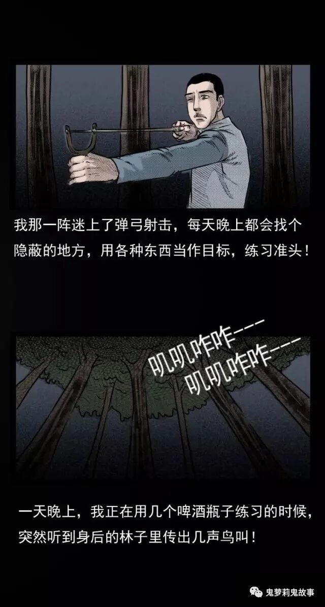 事情发生在2012年,广东省东莞市高垬镇,那时我刚刚失业,搬到了这里的一个较偏僻的地方居住,但是偏僻也有好处,这里到了晚上附近几乎没什么人活动,都是小树林,正好方便了我,我那一阵迷上了弹弓射击,每天晚上都会找个隐蔽的地方,用各种东西当作目标,练习准头!一天晚上,我正在用几个啤酒瓶子练习的时候突然听到身后的林子里传出几声鸟叫!这可把我高兴坏了,要知道,喜欢弹弓的人,谁不想能打几只活的东西,可在树林里转了几圈,反而遇到了件让我记忆忧心的事情……