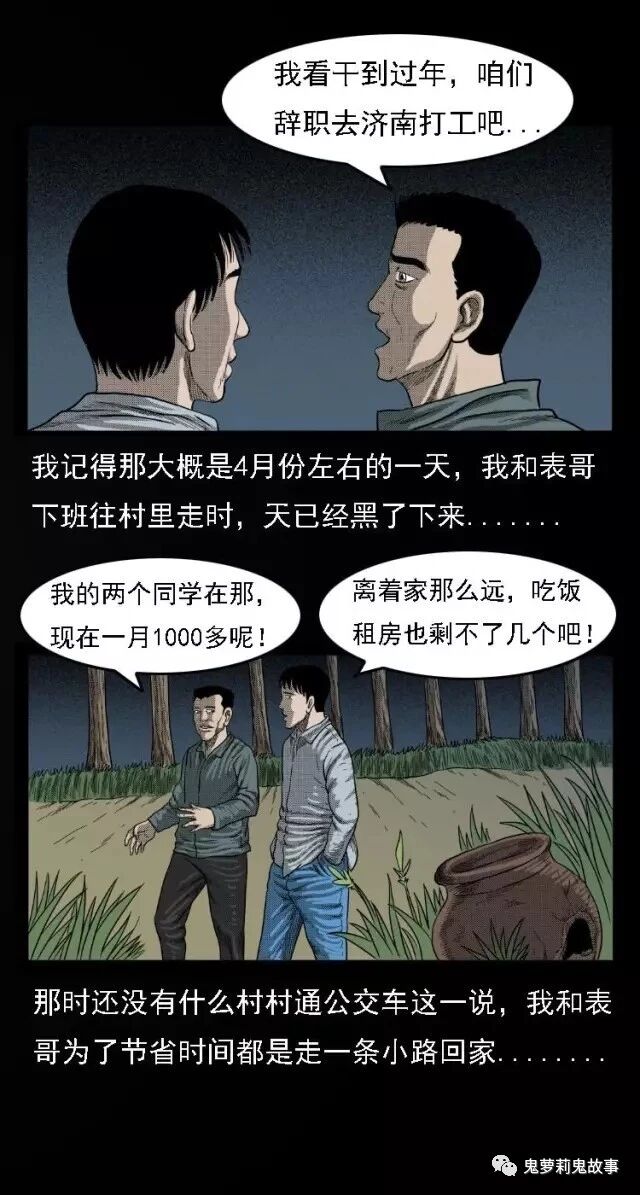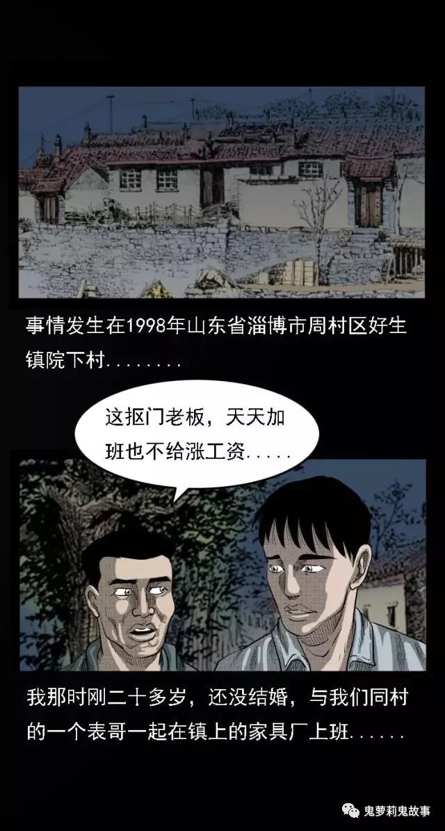 中国诡实录之《中邪》 2018-11-18惊奇手札 发布者:未知 来源:鬼萝莉漫画 事情发生在1998年山东省淄博市周村区好生镇院下村,我那时刚ニ十多岁,还没结婚,与我们同村的一个表哥一起在镇上的家具厂上班,我记得那大概是4月份左右的一天,我和表哥下班往村里走时,天已经黑了下来…… 共2页: 上一页12下一页