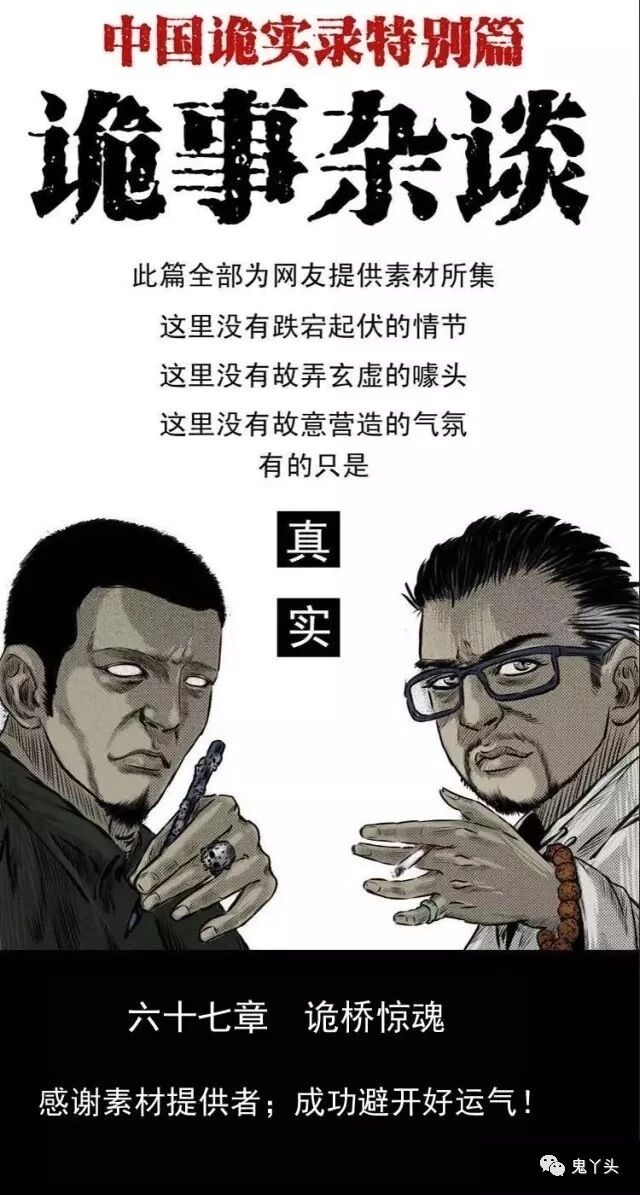 中国诡实录|诡事杂谈之《诡桥惊魂》 2018-12-03惊奇手札 发布者:未知 来源:鬼萝莉漫画 事情发生在2005年的吉林省四平市小孤山镇宋家油坊村,是我小时候的亲身经历,那时我只有十二岁,五月份的一天我跟爸爸到邻村我四叔家去吃饭,那时候我们那也有吃两顿饭的习惯,也就是一天只吃两顿。下午的一顿般是四五点钟之后才吃,我和爸爸在四叔家吃完饭后已经是六点多了,天已接近傍晩…… 共3页: 上一页123下一页