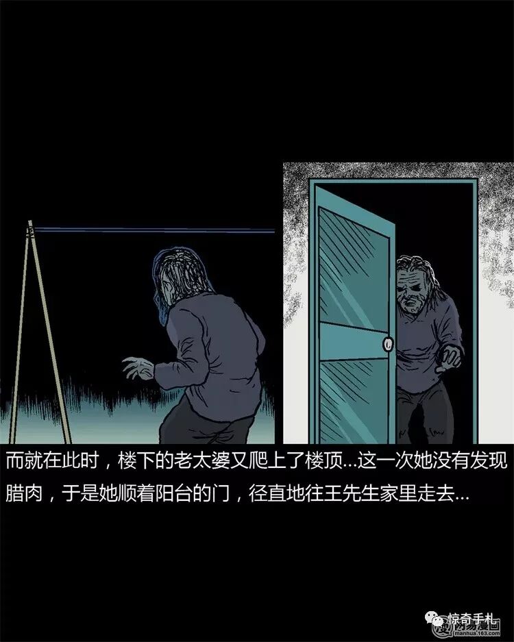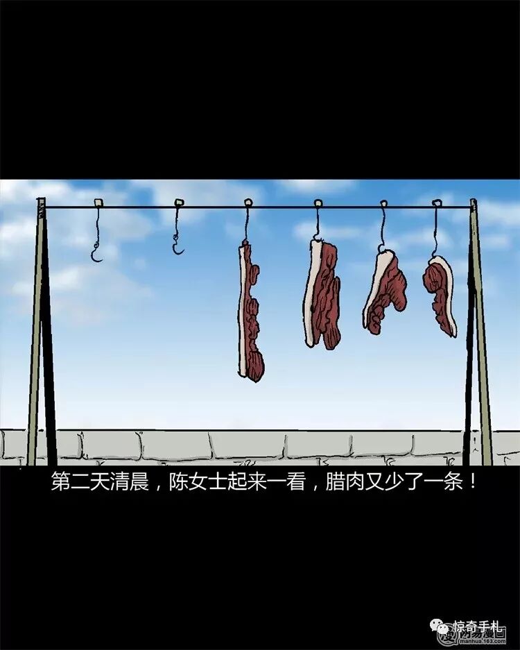 三老爷惊奇手札之《老太太》 2019-03-15惊奇手札 发布者:未知 来源:鬼萝莉漫画 这天晚上,住在楼顶的陈女士在自家阳台上挂腊肉,腌好了盐的腊肉,需要洗去水分后,挂在通风处几天,以让腊肉充分吸收盐分,陈女土不多不少挂了6条腊肉,想等到天明再上来看看,于是就下了楼,就在这时,楼顶的外墙上,居然出现了一个身影…… 三老爷惊奇手札之《老太太》 共2页: 上一页12下一页