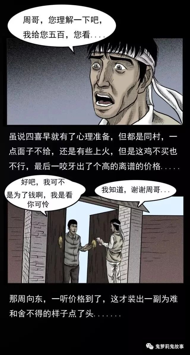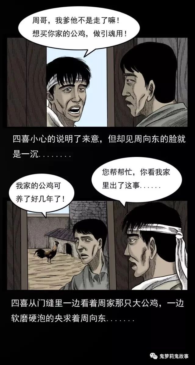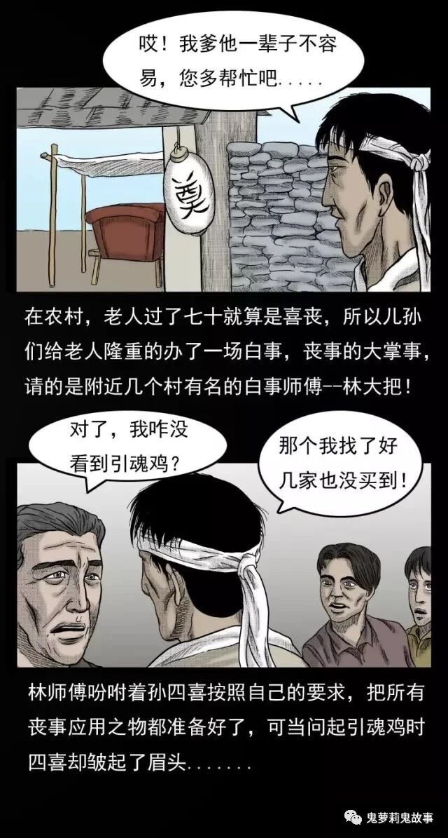 中国诡实录之《引魂鸡》 2018-10-22惊奇手札 发布者:未知 来源:鬼萝莉漫画 事情发生在2010年,河南省焦作市西村乡磨石坡村,村民孙四喜的爸爸死了,老爷子七十三了,在人生的第一道砍上,没能过去,在农村,老人过了七十就算是喜丧,所以儿孙们给老人隆重的办了一场白事,丧事的大掌事请的是附近几个村有名的白事师傅一林大把!林师傅吩咐着孙四喜按照自己的要求,把所有丧事应用之物都准备好了,可当问起引魂鸡时四喜却皱起了眉头.... 共2页: 上一页12下一页