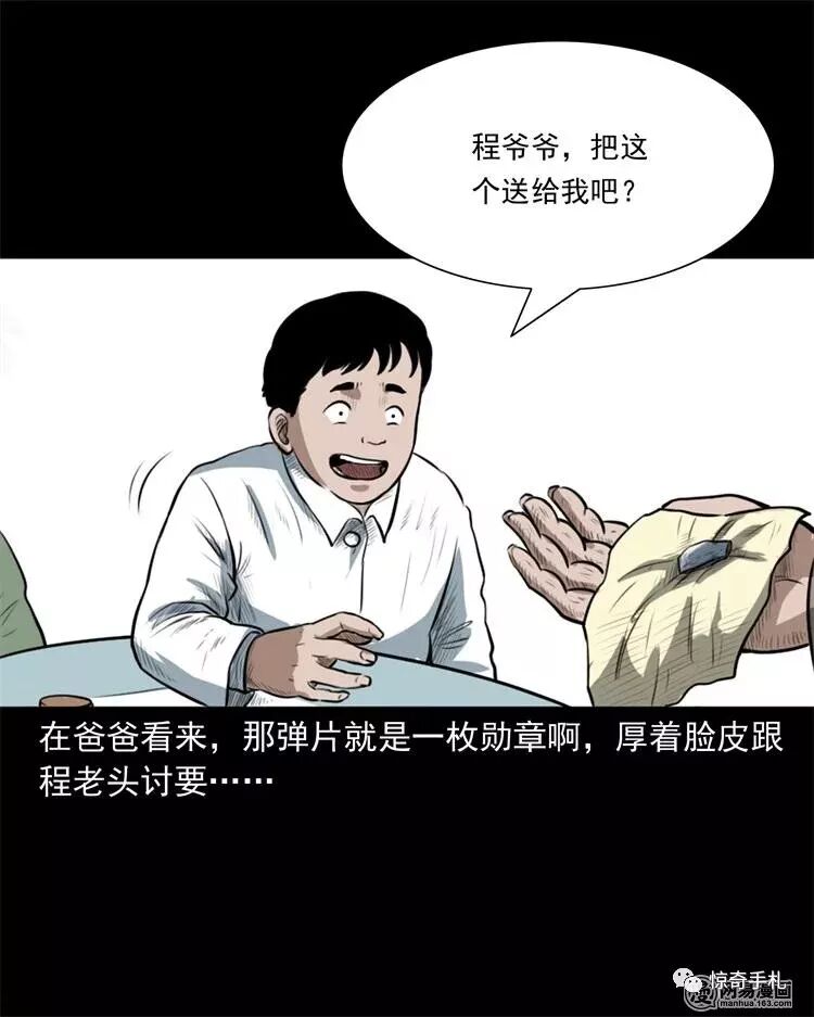 这个故事是从我妈那听来的,讲的是我爸的故事,我爸有一个护身符,不是观音不是佛,而是一块弹片,他戴了几十年了,今天我就来讲一讲那个关于弹片的故事,这个故事得从几十年前说起了,那时爸爸只有十来岁,还住在东北农村老家,对于他们那个时代的孩子来说,根本就没有什么作业和补习班一类的负担,每天放了学都是丢下书包就往外跑,爸爸性子野,爷爷奶奶基本都管不了他,唯有一个人能让爸爸乖乖听话,这个人姓程,是村子里为数不多的老红军……