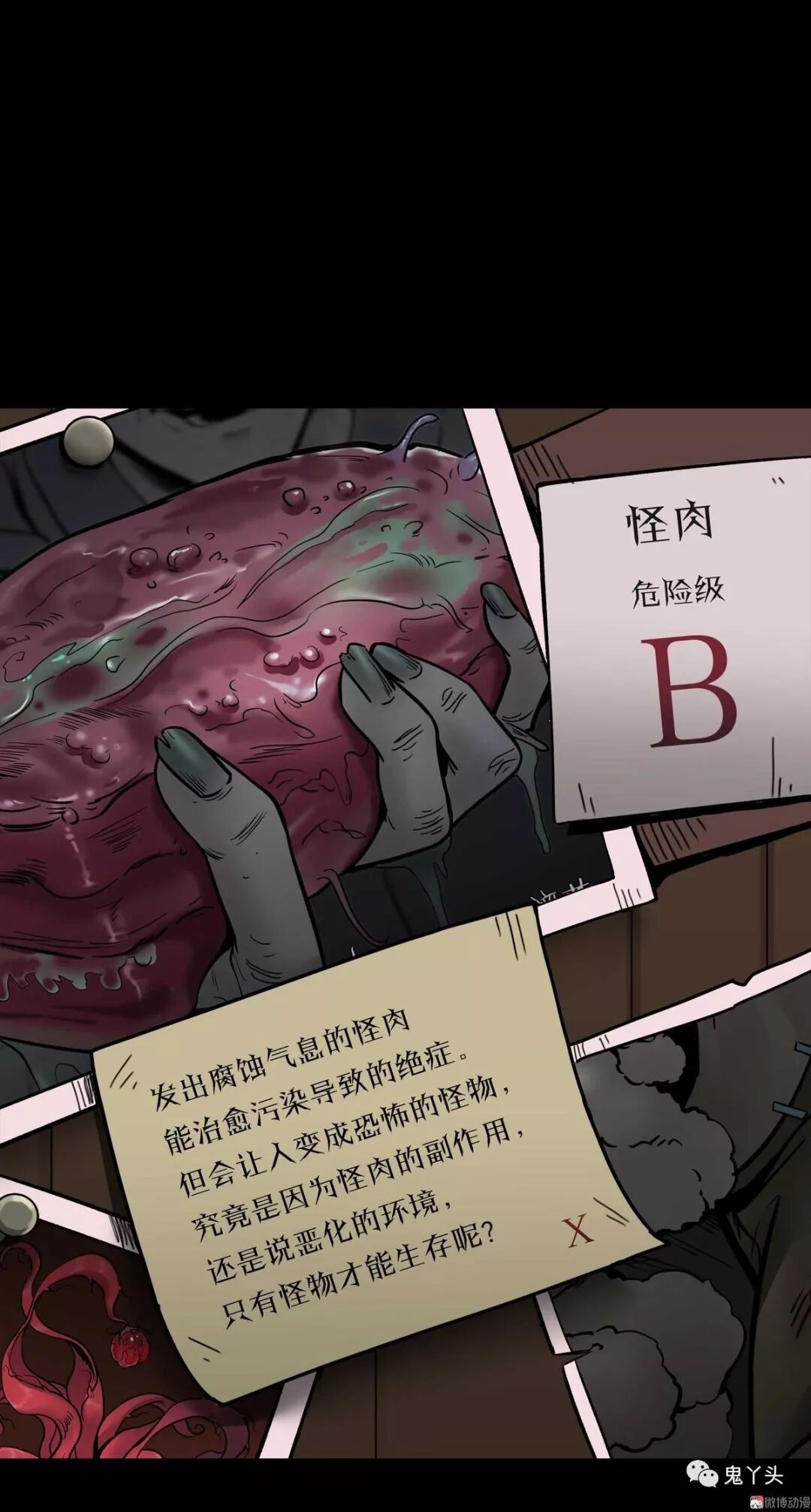 其实最后卖串的怪物就是男主和他的妈妈,他们卖的烤串的原材料正是那些能够让人变成怪物的腐肉……