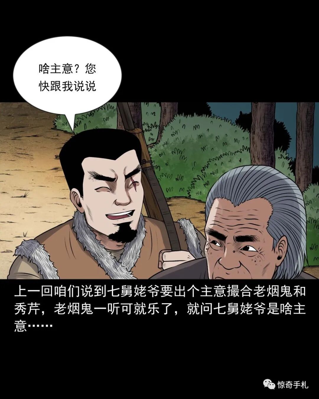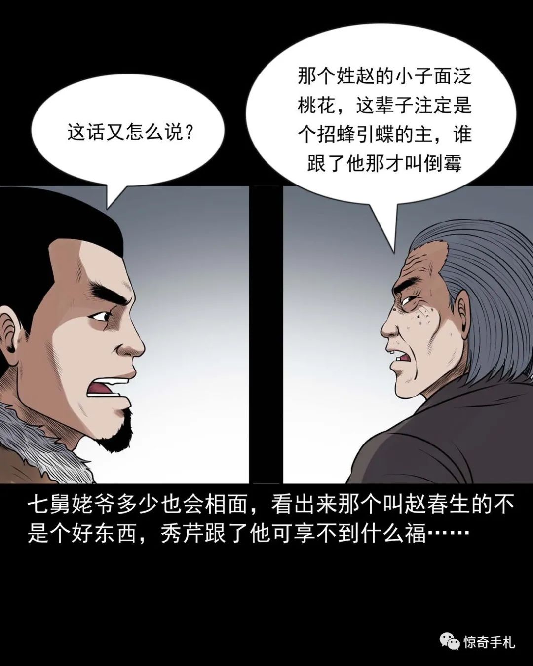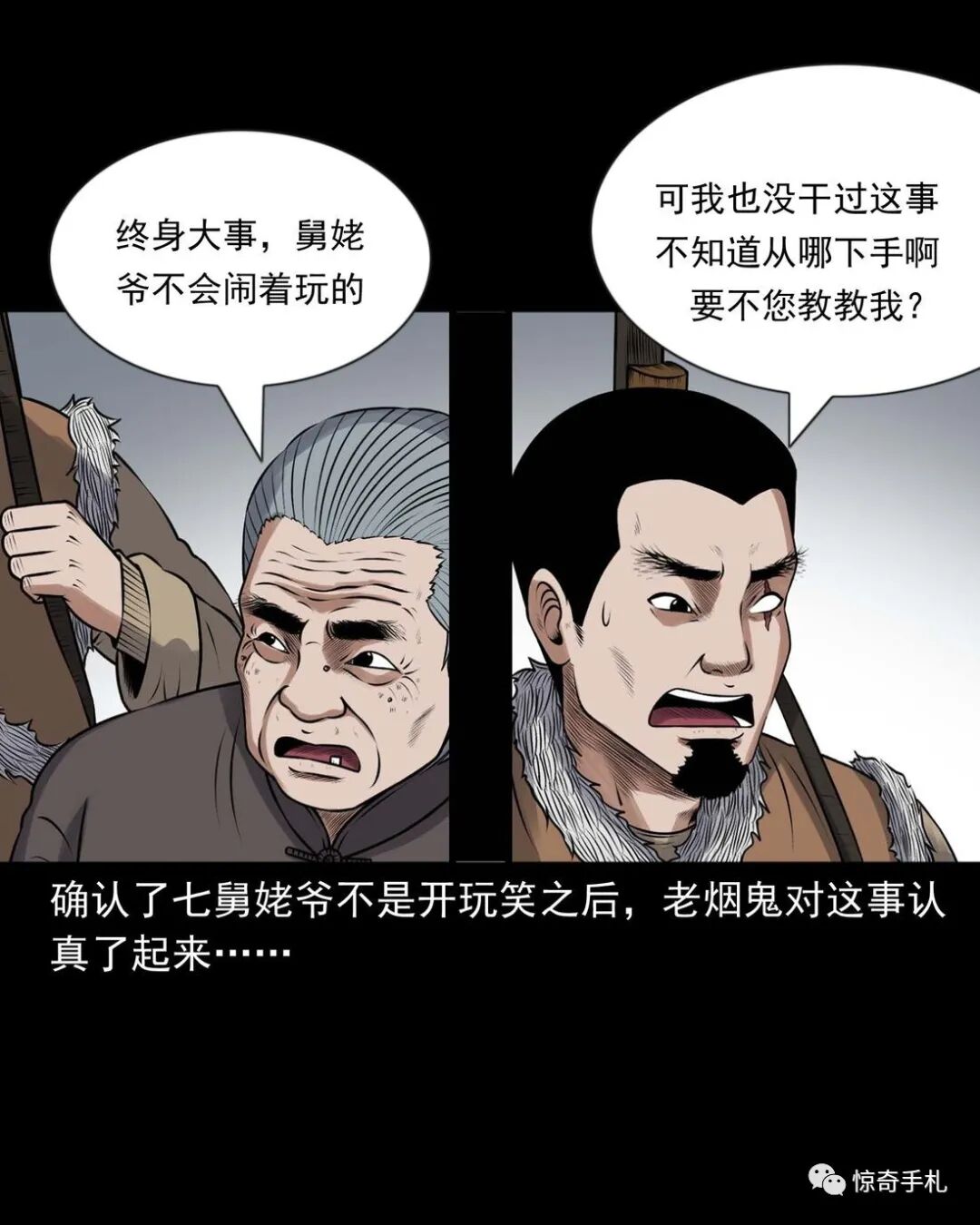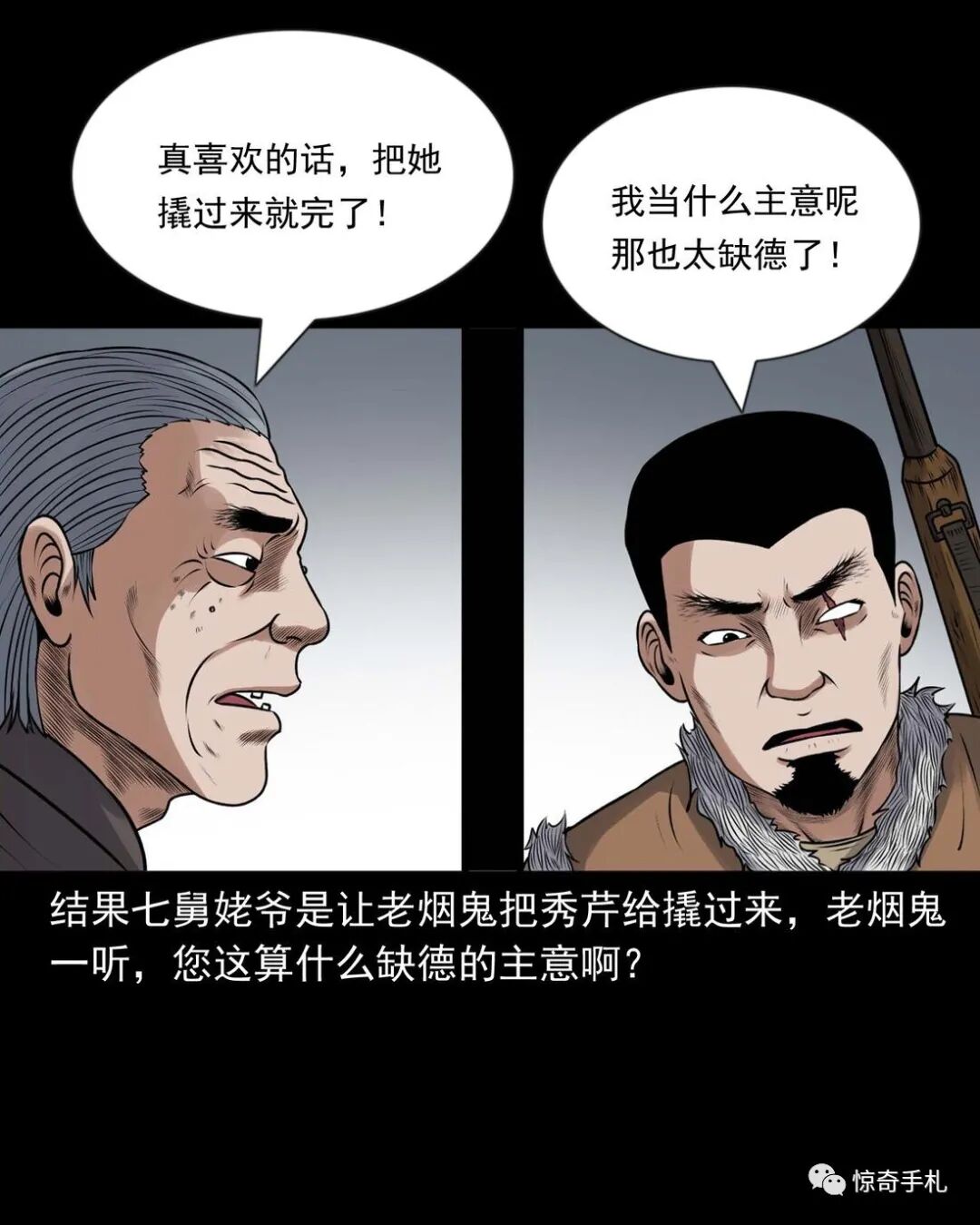 上ー回咱们说到七舅姥爷要出个主意撮合老烟鬼和秀芹,老烟鬼一听可就乐了,就问七舅姥爷是啥主意。结果七舅姥爷是让老烟鬼把秀芹给撬过来,老烟鬼一听,您这算什么缺德的主意啊?七舅姥爷说那样做不但不是缺德,还是帮了秀芹,七舅姥爷多少也会相面,看出来那个叫赵春生的不是个好东西,秀芹跟了他可享不到什么福,老烟鬼一听那要是这样的话,这件事倒是得干!而且七舅姥爷也说了,他和秀芹有夫妻相,老烟鬼心里美得慌,可又怕七舅姥爷是拿他寻开心逗他玩……三老爷惊奇手札之《老烟鬼(52)》