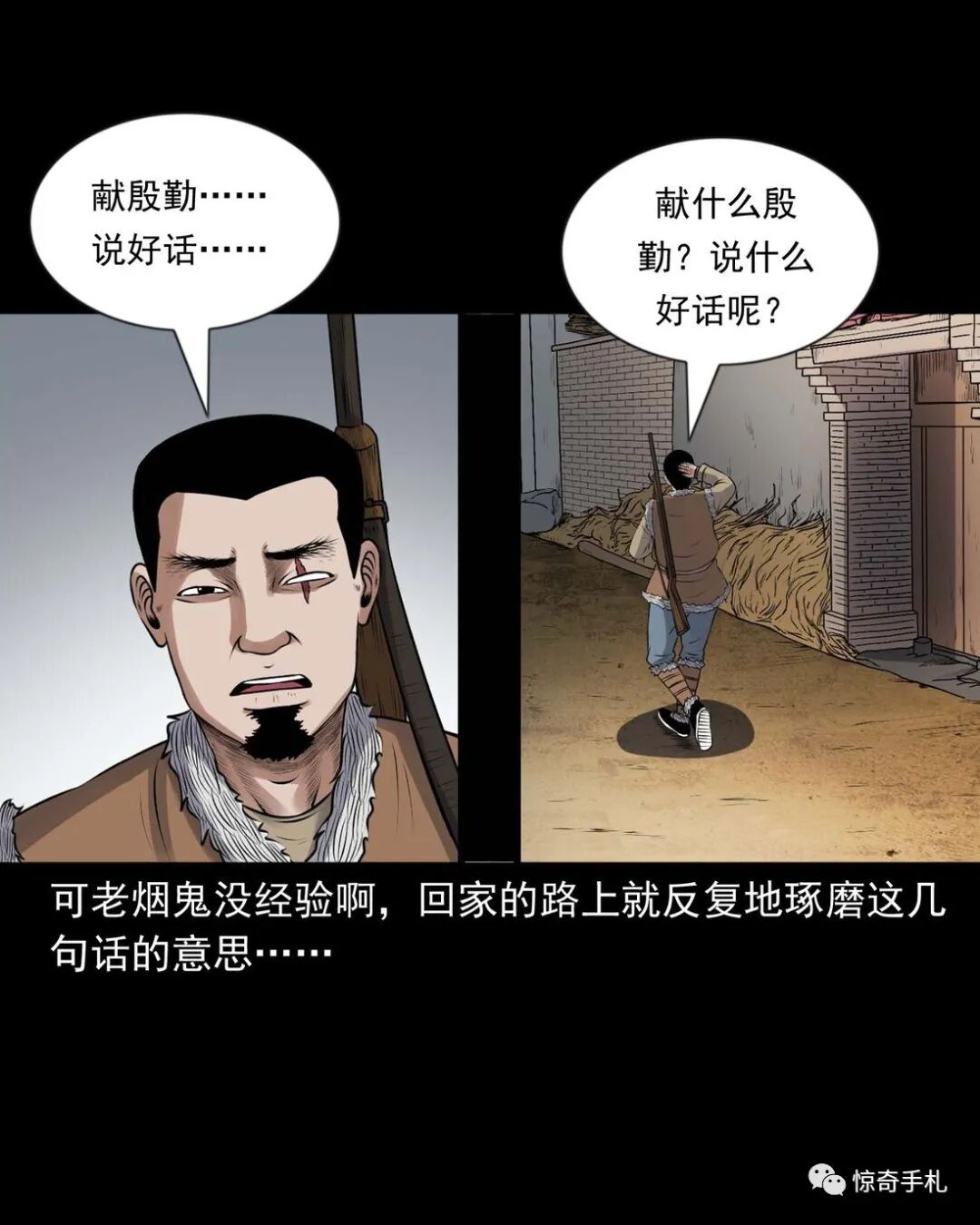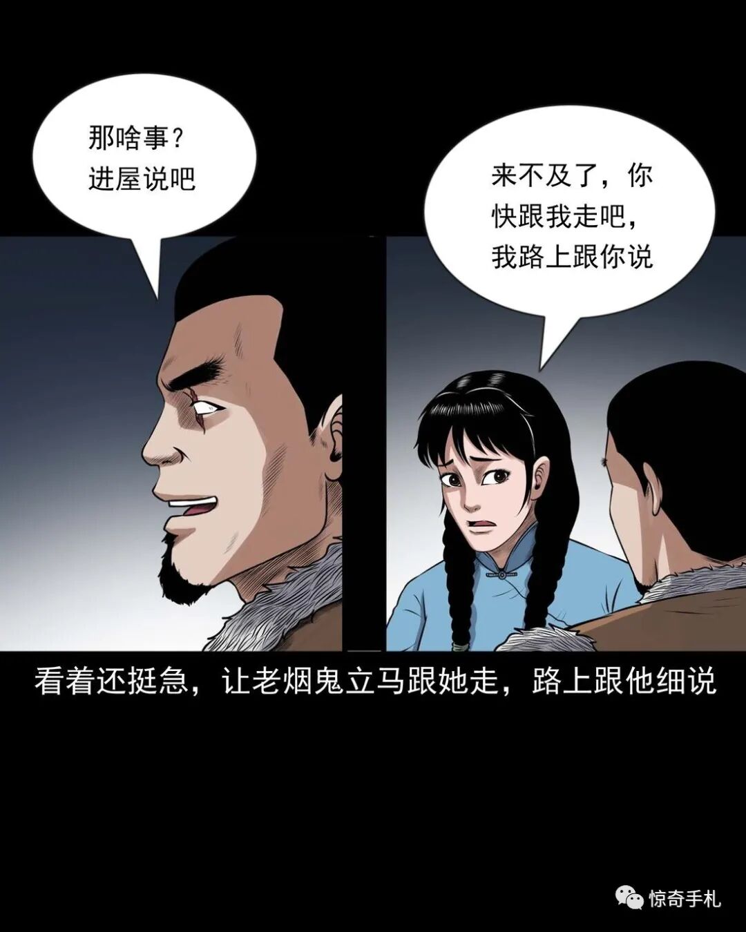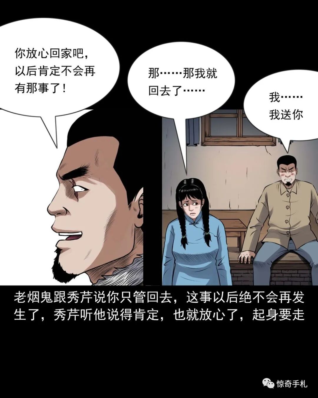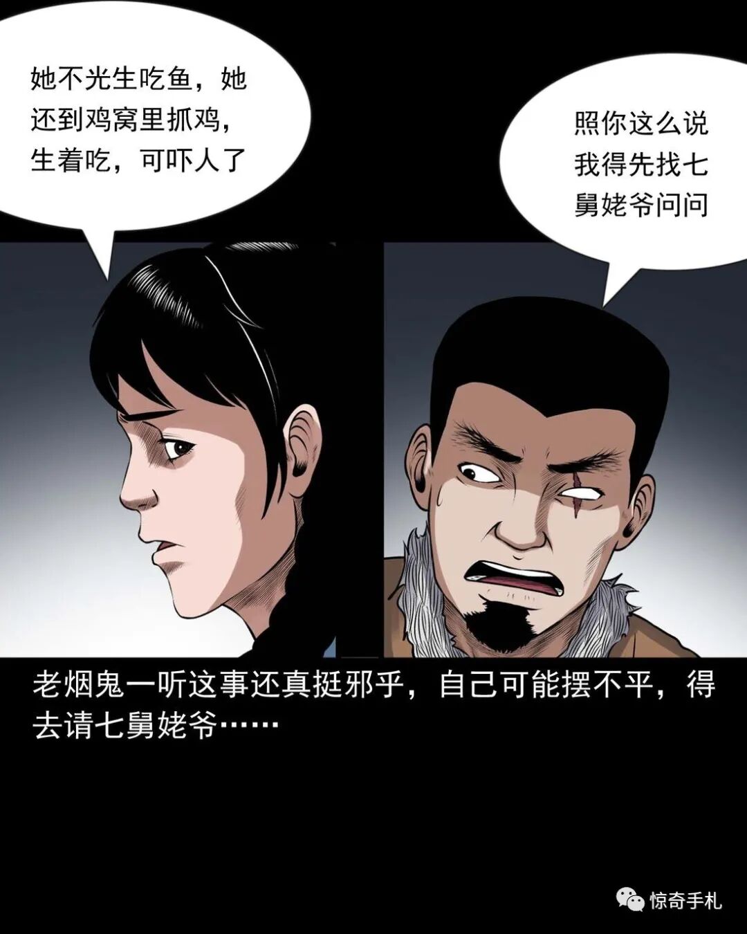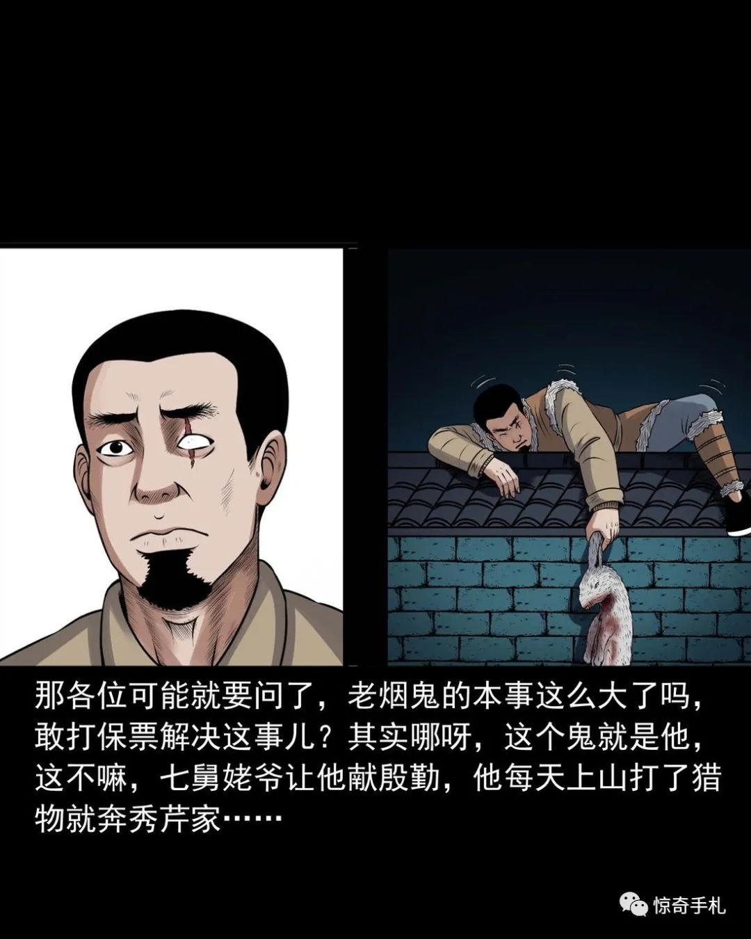 上ー回咱们说到七舅姥爷要出个主意撮合老烟鬼和秀芹,老烟鬼一听可就乐了,就问七舅姥爷是啥主意。结果七舅姥爷是让老烟鬼把秀芹给撬过来,老烟鬼一听,您这算什么缺德的主意啊?七舅姥爷说那样做不但不是缺德,还是帮了秀芹,七舅姥爷多少也会相面,看出来那个叫赵春生的不是个好东西,秀芹跟了他可享不到什么福,老烟鬼一听那要是这样的话,这件事倒是得干!而且七舅姥爷也说了,他和秀芹有夫妻相,老烟鬼心里美得慌,可又怕七舅姥爷是拿他寻开心逗他玩……三老爷惊奇手札之《老烟鬼(52)》