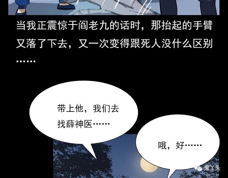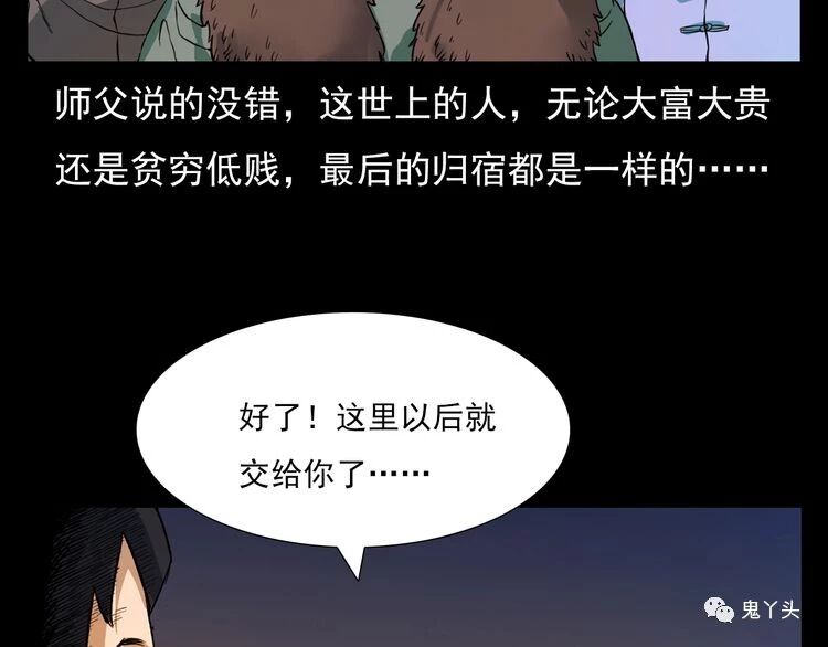 枪爷异闻录之《我的师父阎老九|猫妖》 2019-05-06枪爷异闻录 发布者:未知 来源:鬼萝莉漫画 处理完了三手妖人的事情没几天,师父又带着我们来到了李老道看守的义庄,让我想不到的是,那李老道算计的还真没错,他寿终正寝,死了,这李老道烧了半辈子的尸体,到最后自己也是一把火燃尽了世间的一切,师父说的没错,这世上的人,无论大富大贵还是贫穷低贱,最后的归宿都是一样的,看着李老道被烧成了一把灰,阎老九回头朝着那茅草屋喊了一句,那茅草屋的门口此时正站着一个人…… 枪爷异闻录之《我的师父阎老九|猫妖》 共5页: 上一页12345下一页